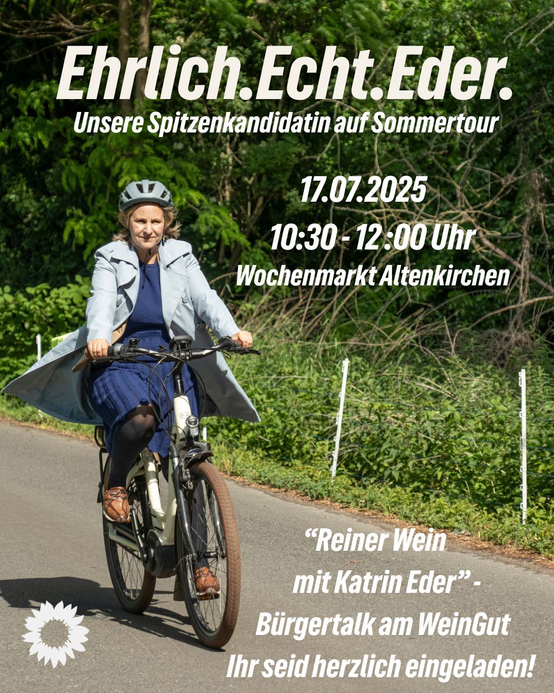 Am Donnerstag, 17. Juli, kommt unsere Spitzenkandidatin für die Landtagswahl 2026, Katrin Eder, nach Altenkirchen!