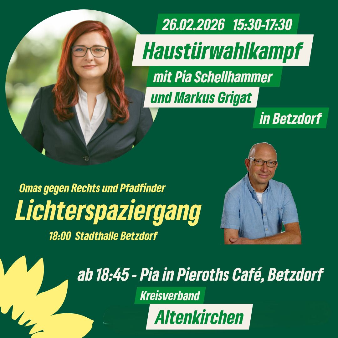 Am 26.02.2026 möchten wir gemeinsam mit Pia Schellhammer und unserem Direktkandidaten Markus Grigat in Betzdorf in den Haustürwahlkampf starten. Treffpunkt ist um 15:30 Uhr.